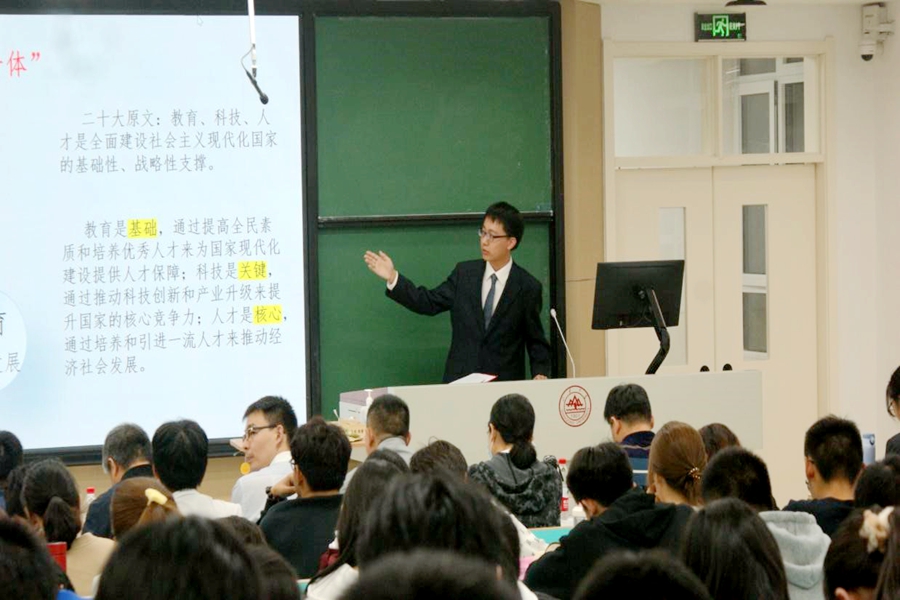 理论领学宣讲中,郝希文、白然竹密切配合,以“不啻微芒,造炬成阳”为题,道出她们对教育点燃希望之火的体会。钟证结合我国人才强国战略,讲述人才推动国家繁荣发展的基石作用。王淑敏结合“薛暮桥精神”,以“立足中国实际,做可堪民族大任的时代新人”为题,呼吁同学们担当使命责任,做有理想、敢担当、能吃苦、肯奋斗的新时代好青年。张忠炜结合党的二十大报告,分析教育、科技、人才“三位一体”的理论内涵和实践要求,并结合304am永利集团发展实际,发出为国家战略贡献青春力量的号召。