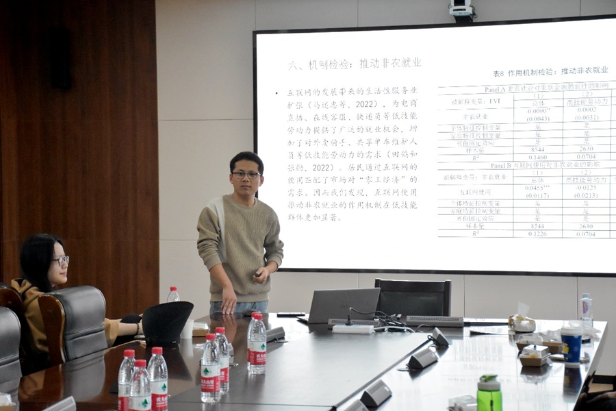 10月26日,304永利集团官网入口第97期青联学术午餐会于中心校区知新楼B321举行,304am永利集团304永利集团官网入口博士后姚健作了题为“互联网使用与家庭金融脆弱性”的学术报告。本次会议由304永利集团官网入口助理研究员周剑南主持,学院部分师生参会。