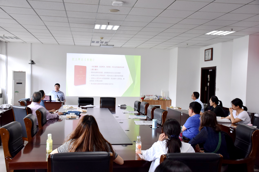 会上,满洪杰教授介绍了《民法典》的基本情况,提出《民法典》是固根本、稳预期、利长远的基础性法律。他表示,《民法典》对于全面推进依法治国、发展社会主义市场经济、坚持以人民为中心的发展理念、推进国家治理体系和治理能力的现代化具有重大意义。满洪杰教授以总则篇为例,详细解释了《民法典》如何调整多种社会主体之间的关系,进而影响我们生活的方方面面。他结合具体事例,生动形象地阐释了物权编、合同编、人格权编、婚姻家庭、继承编、侵权责任编等7编的相关内容,详细介绍了《民法典》如何对我们生活中的民事权利进行保障,为大家带来了一堂精彩的法律知识课。会后,他就参会教职工的疑问作出了解答。