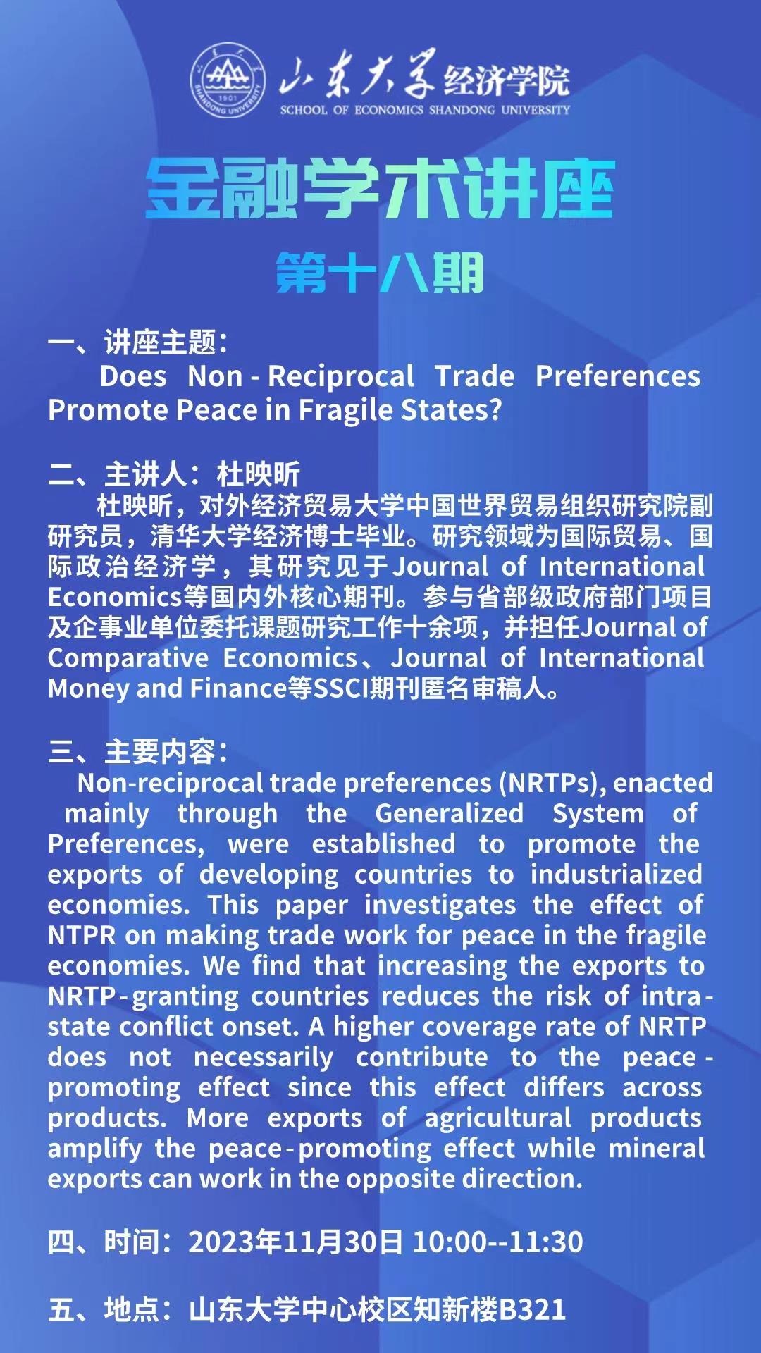 Does Non-Reciprocal Trade Preferences Promote Peace in Fragile States?(金融学术讲座第十八期)
