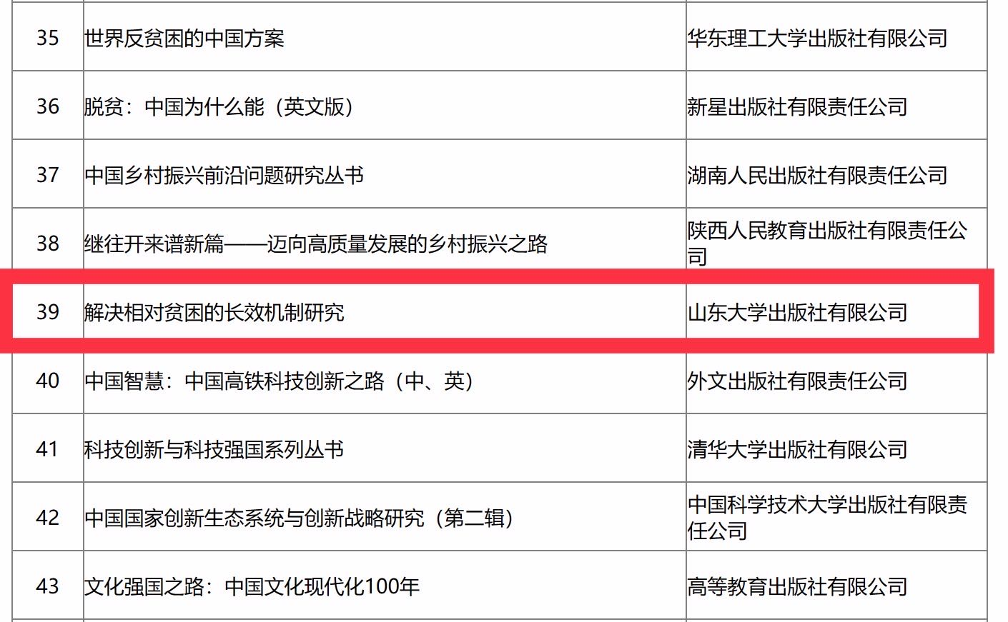 2023年4月27日,国家出版基金规划管理办公室发布2023年度国家出版基金资助项目评审结果公告,经报国家出版基金管理委员会批准,决定对已公示项目给予国家出版基金资助。解垩教授申报的“解决相对贫困的长效机制研究”项目成功入选。